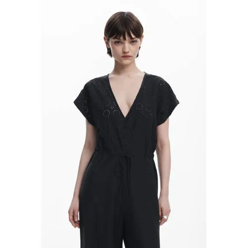 Deze jumpsuit van Desigual is gemaakt van 100% katoen en valt soepel langs het lichaam. De jumpsuit heeft een mooie V-hals en broderie details. Perfect voor een stijlvolle en comfortabele look.