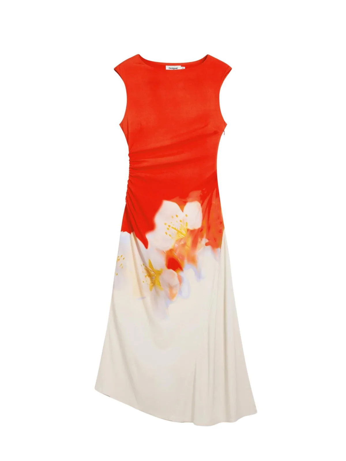 Specificaties: Desigual Jurk crème / lichtblauw / oranje / kreeft