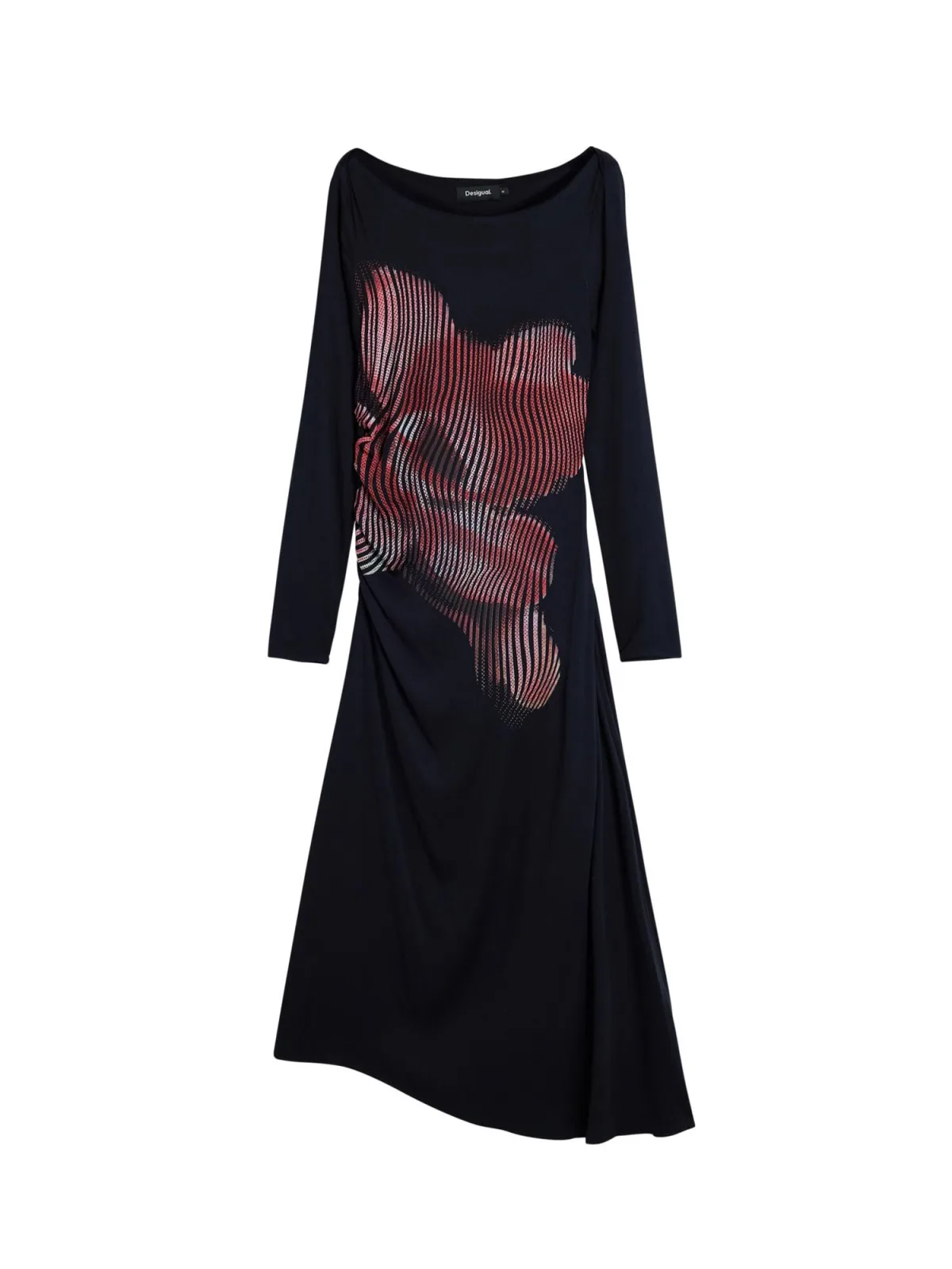 Design: Gevoerde zoom/rand, A-lijn, Asymmetrische zoom; Materiaal: Viscose; Halstype: Boothals; Motief: Bloemenprint; Details: Gedrapeerd; Extra's: Gladde stof, Voelt zacht aan; Lengte: 7/8 lengte; Pasvorm: Normale pasvorm; Armlengte: Lange mouw
