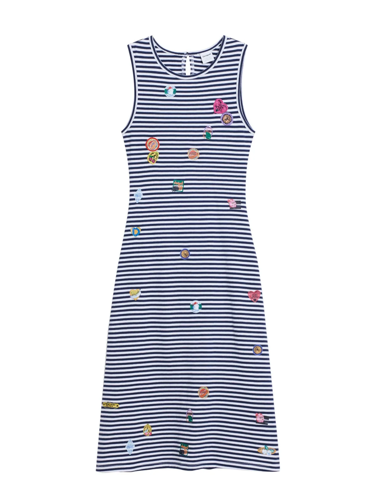 Design: Gevoerde zoom/rand, Zijdelingse inkepingen; Type sluiting: Knoopsluiting; Materiaal: Jersey; Halstype: Ronde hals; Motief: Gestreept; Soort bandjes: Brede bandjes; Details: Cut-outs, Borduursels, Gedrapeerd, Patches; Extra's: All-over patroon, Applicaties; Lengte: 3/4 lengte; Pasvorm: Slanke pasvorm; Armlengte: Mouwloos