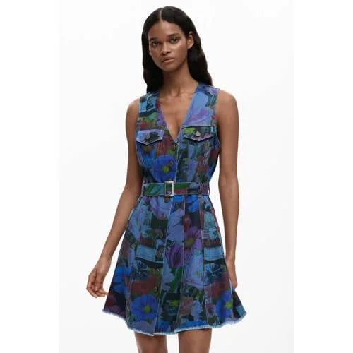 Deze zomerse Desigual jurk zonder mouwen is een lichte en luchtige keuze voor warme dagen. De jurk heeft een middel-lange snit en valt als een korte jurk, geschikt voor een ontspannen maar verzorgde look. De all over print in meerdere kleuren zorgt voor een levendig geheel, terwijl de V-hals en knoopsluiting aan de voorkant een vrouwelijke uitstraling geven. Gemaakt van 100% lyocell voelt de stof soepel en zacht op de huid, prettig als het warm is.Praktische details met een zomerse look Gemaakt van 100% lyocell, een gladde en lichte stof die prettig aanvoelt Mouwloos model, ideaal voor zomerse temperaturen V-hals met knoopsluiting aan de voorkant voor een open, luchtig effect Borstzakken voor een casual accent Ceintuur in de taille om het silhouet naar wens te accentueren Middel-lange lengte die comfortabel valt als korte jurk All over print in multi kleur voor een kleurrijke uitstralingVoor zonnige dagen en lichte lagenDeze jurk is goed te dragen op een zomerse dag met sandalen of slippers. Als het iets frisser wordt, combineer je de jurk eenvoudig met een lichte cardigan of spijkerjas. De ceintuur kun je strakker of losser knopen, zodat de pasvorm past bij jouw dag.Desigual: kleur en karakter in je garderobeDesigual staat bekend om opvallende prints, kleurgebruik en speelse details. De collecties combineren verschillende dessins en kleuren tot herkenbare ontwerpen met karakter. Met deze jurk haal je een item in huis dat die typische Desigual signatuur duidelijk laat zien.Een lichte, kleurrijke jurk die je garderobe klaar maakt voor zomerse momenten.