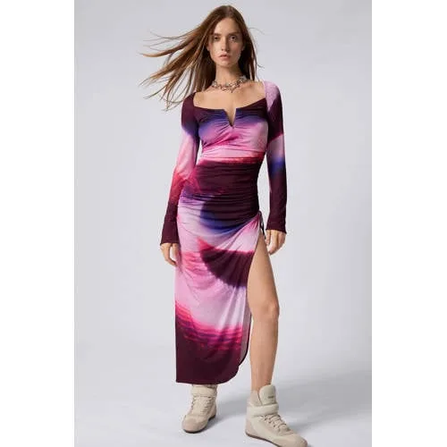 Deze donkerrode Desigual jurk is een opvallend item voor dagen waarop je zin hebt in iets bijzonders. De bodycon pasvorm volgt subtiel je silhouet, terwijl de midi lengte tot net onder de knie reikt voor een elegante uitstraling. De jurk is gemaakt van licht, semi-transparant mesh met een all over print, wat zorgt voor een speels laagjes-effect over een effen basislaag.Kenmerken van de donkerrode mesh midi jurk Lange, rechte mouwen voor een mooi aansluitend silhouet Midi lengte, ideaal rond de knie voor een vrouwelijke look Bodycon model dat dicht langs het lichaam valt Gemaakt van soepel mesh dat licht en luchtig aanvoelt All over print in donkerrode tinten voor een grafisch effect Button down kraag die een blouse-achtige touch geeft Geen sluiting, zodat de jurk eenvoudig over het hoofd aan te trekken is Ontworpen zonder zakken voor een strakke, gladde lijnVan etentje tot avond uitDe combinatie van mesh, lange mouwen en midi lengte maakt deze jurk geschikt voor verschillende momenten. Geschikt voor een etentje, een feestje of een avond in de stad, met wisselende schoenen en accessoires krijgt de jurk steeds een andere uitstraling.Desigual met oog voor detailDesigual staat bekend om uitgesproken dessins, rijke kleuren en verrassende details. Deze jurk laat dat duidelijk zien in de all over print en de combinatie van mesh met een getailleerd silhouet. Je kiest voor een merk dat herkenbare ontwerpen maakt, met aandacht voor pasvorm en afwerking.Een karakteristieke jurk die je garderobe direct meer kleur en karakter geeft.