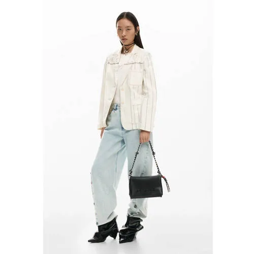 Altijd je essentials bij de hand met deze zwarte Desigual crossbody tas. Het strakke, effen design maakt dit een tas die je makkelijk elke dag gebruikt, terwijl de herkenbare Desigual-details zorgen voor een eigentijdse uitstraling. Draag de tas schuin over je schouder of als schoudertas, precies zoals het bij jouw dag past.Handige indeling voor dagelijks gebruik Geschikt als crossbody tas en schoudertas, dankzij de verstelbare schouderband Zwarte kleur die eenvoudig te combineren is met verschillende outfits Gemaakt van imitatieleer, dat stevig aanvoelt en makkelijk schoon te maken is Veilige ritssluiting over de bovenkant, zodat je spullen goed opgeborgen zijn Effen design dat zowel bij casual als meer geklede outfits pastCompact en toch ruim genoegDeze tas is geschikt voor dagen waarop je licht wilt reizen, maar toch alles mee wilt nemen wat je nodig hebt. Denk aan je telefoon, portemonnee, sleutels en een kleine make-upcase. De ritssluiting zorgt ervoor dat alles op zijn plek blijft, of je nu onderweg bent naar werk, een etentje of een dagje stad.Desigual, herkenbare stijl met eigen karakterDesigual staat bekend om designs met een eigen signatuur. Ook bij deze tas zie je die aandacht voor vormgeving terug in de subtiele afwerking en de doordachte details. Je kiest voor een merk dat opvalt door tassen met een herkenbare stijl die passen bij een moderne, veelzijdige levensstijl.Een praktische tas met een stijlvolle uitstraling die je moeiteloos elke dag kunt dragen.