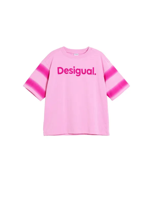 Laat kleur en vrolijke energie spreken met dit Desigual meisjes T-shirt. De roze basis wordt gecombineerd met een meerkleurige tekstprint, precies zoals je van Desigual gewend bent. Een shirt voor elke dag, dat net even anders is en toch makkelijk te combineren met de favoriete jeans, rok of short van je dochter.Zacht katoen met speelse print Gemaakt van 100% katoen, dat zacht aanvoelt op de huid, ook op drukke schooldagen Korte mouwen en een ronde hals voor een luchtig en comfortabel gevoel Roze kleur met meerkleurige tekstprint voor een vrolijke, speelse look Rechte mouwen zorgen voor een ontspannen pasvorm met genoeg bewegingsvrijheid Geschikt voor schoolkinderen en tieners, afgestemd op de dagelijkse kids collectieVoor school, vrije tijd en alles ertusseninDit T-shirt past goed in de dagelijkse garderobe. Ideaal voor naar school, een middag met vriendinnen of een relaxed weekend. Draag het op een jeans en sneakers voor een casual outfit of combineer met een rok voor een iets sportievere girls look.Desigual met eigenzinnige stijlDesigual staat bekend om opvallende prints, kleurcombinaties en ontwerpen met een eigen karakter. Elk item is herkenbaar en zorgvuldig ontworpen, zodat kinderen hun eigen stijl kunnen laten zien. Met dit T-shirt haal je een betrouwbaar mode-item in huis dat ontworpen is voor dagelijks gebruik.Een vrolijk T-shirt dat het dagelijkse aankleden een speels accent geeft.