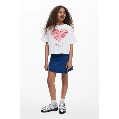 Deze denim meisjesrok van Desigual is een fijne basic met speelse details voor elke dag. De medium blue denim kleur past makkelijk bij T-shirts, truien en sneakers, terwijl de korte lengte zorgt voor veel bewegingsvrijheid tijdens spelen en rennen. Typisch Desigual zijn de subtiele borduursels die de rok net wat specialer maken, zonder dat hij te druk wordt.Handige details voor elke dag Gemaakt van katoen en viscose voor een zachte stof die prettig aanvoelt op de huid 5-pocket model, net als een echte spijkerbroek, handig voor kleine schatten Rits- en knoopsluiting aan de voorkant voor een stevige, vertrouwde sluiting Omslagdetail aan de onderkant voor een speels en modern effect Korte spijkerrok, ideaal voor het voorjaar en de zomer of met een maillot eronder op koelere dagenVoor peuters en schoolkinderenDeze spijkerrok is geschikt voor peuters, kleuters en schoolkinderen en hoort thuis in de dagelijkse garderobe. Combineer de rok met een simpel T-shirt voor naar school of met een fijn vestje voor een visite bij familie. De stevige denimkwaliteit sluit goed aan bij actief spel, van de speeltuin tot een dagje uit.Desigual voor kinderenDesigual staat bekend om kleurrijke ontwerpen en speelse details die kinderen aanspreken. De kinderkledingcollecties combineren comfort met eigenwijze accenten, zodat elk item iets bijzonders heeft. Met deze rok haal je een vrolijk en betrouwbaar kledingstuk in huis dat makkelijk te combineren is met andere favorieten uit de kast.Een praktische spijkerrok met vrolijke Desigual details waar je kind vaak en graag naar zal grijpen.