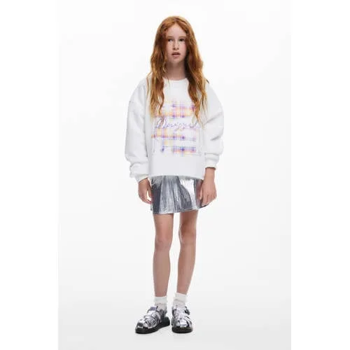Laat haar dagelijkse outfit opvallen met deze Desigual sweater voor meisjes. De SWEAT LONG heeft een langere fit en combineert wit met speelse paarse en oranje accenten. Ideaal voor school, een dagje weg of gewoon om thuis in te relaxen. De zachte sweatkwaliteit van 100% katoen voelt prettig aan op de huid en geeft genoeg bewegingsvrijheid om zorgeloos te spelen.Kleurrijke sweater met comfortabele details Lange sweater, iets langer model voor extra bedekking en een moderne look Kleurcombinatie wit, paars en oranje met speelse logo print en printopdruk Gemaakt van 100% katoen in een zachte sweatkwaliteit, prettig voor elke dag Lange rechte mouwen die comfortabel vallen Ronde hals die makkelijk over het hoofd gaat Geribde boorden langs hals, mouwen en onderkant voor een mooie aansluiting Geen zakken, waardoor het silhouet rustig blijft en makkelijk te combineren is Onderdeel van de Daily collectie, geschikt voor dagelijks gebruikVoor school, spelen en relaxenDeze sweater past goed bij een jeans, een legging of een sportieve rok. Handig om snel aan te trekken over een T-shirt als extra laag, of als opvallend bovenstuk op frissere dagen. De langere lengte zorgt voor een comfortabel gevoel tijdens rennen, fietsen en buitenspelen.Desigual, kleurrijke mode met karakterDesigual staat bekend om zijn opvallende prints, kleurcombinaties en speelse details. Het merk maakt kinderkleding die tegen een stootje kan, met aandacht voor vormgeving en draagcomfort. Met deze sweater haal je een stuk herkenbare Desigual stijl in huis, in een praktische uitvoering voor alledag.Een sweater die haar garderobe direct wat kleur en energie geeft.