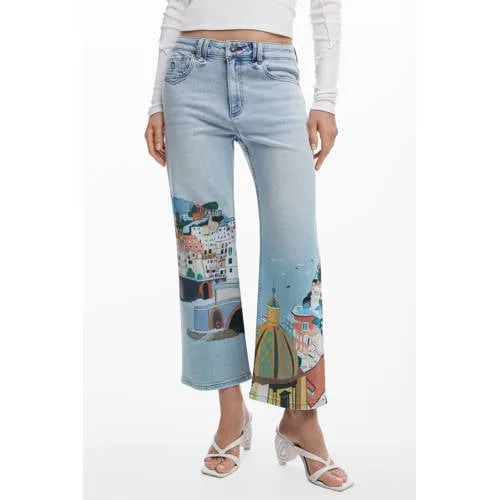 Til je dagelijkse denimlook naar een hoger niveau met deze lichtblauwe Desigual straight leg jeans. De subtiele printopdruk geeft de broek een speelse twist, terwijl de rechte, licht toelopende pijpen zorgen voor een moderne pasvorm. Door de langvallende lengte en de regular waist sluit deze jeans netjes aan op de heupen zonder te strak te zitten.Lichtblauw denim met verrassende details Gemaakt van 93% katoen, 6% polyester en één procent elastaan voor stevig denim met een lichte stretch. Lichtblauwe kleur met printopdruk voor een karakteristieke Desigual uitstraling. Regular waist die comfortabel rond de taille zit. Straight leg met licht tapered effect, geschikt voor zowel sneakers als enkellaarsjes. Klassieke vijf-pocket styling en riemlussen voor een vertrouwde denimlook. Rits- en knoopsluiting voor een nette afwerking aan de voorkant. Valt klein, handig om een maat groter te kiezen voor een ontspannen pasvorm.Elke dag draagbaar denimDeze jeans is ontworpen voor dagelijks gebruik. De combinatie van katoen met een beetje elastaan zorgt ervoor dat de stof stevig aanvoelt en toch meebeweegt met je lichaam. De langvallende pijpen en rechte lijn maken de broek geschikt voor allerlei gelegenheden, van een drukke dag onderweg tot een ontspannen middag in de stad.Desigual: herkenbare stijl met eigen karakterDesigual staat bekend om kleurrijke designs, opvallende details en een sterke eigen signatuur. Deze jeans past precies in die visie. De printopdruk en uitgewerkte details geven het vertrouwde denim een frisse interpretatie, met aandacht voor pasvorm en draagcomfort.Een veelzijdige jeans met een herkenbare Desigual signatuur die je keer op keer graag uit de kast pakt.