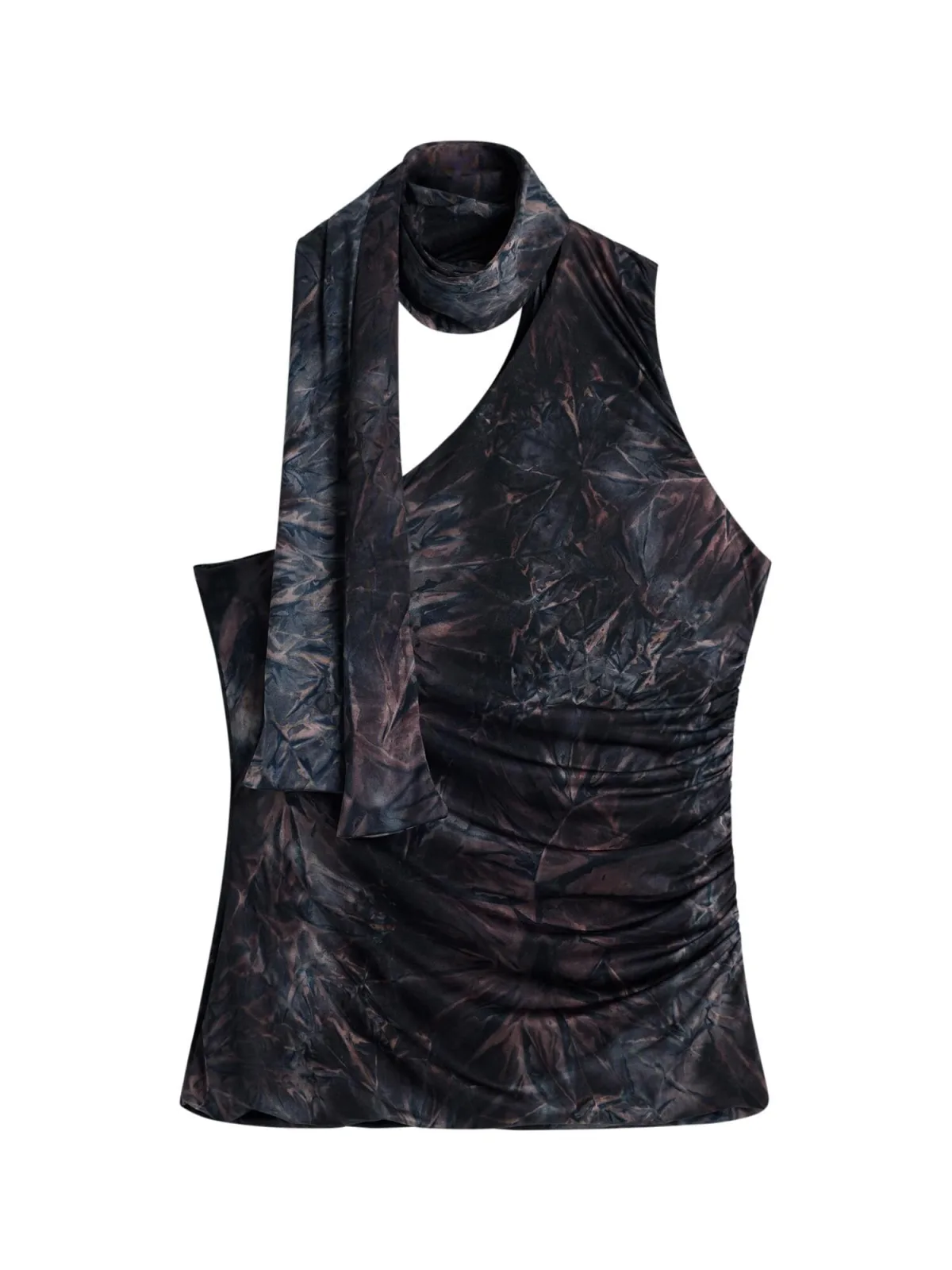 Design: Gevoerde zoom/rand; Materiaal: Jersey; Halstype: Opstaande kraag; Details: Gedrapeerd; Extra's: All-over patroon; Pasvorm: Normale pasvorm; Armlengte: Mouwloos; Lengte: Normale lengte