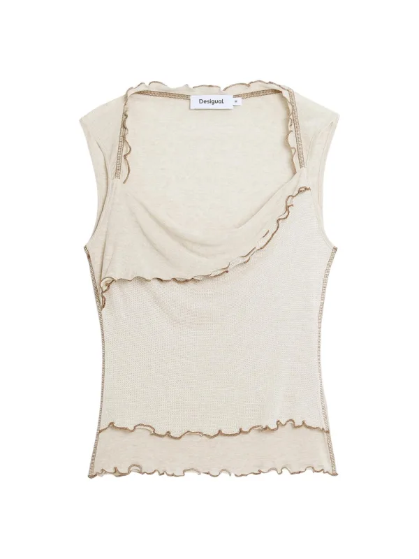 Specificaties: Desigual Top crème / bruin