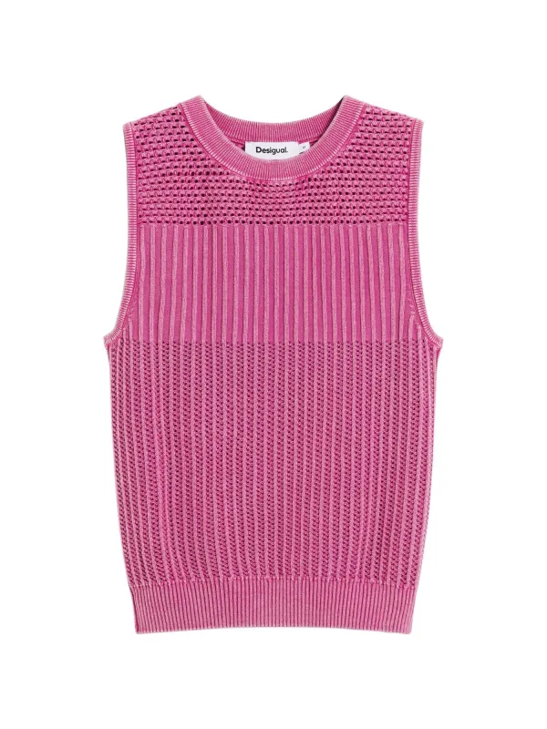 Design: Geribd ceintuurtje, Geribbeld gebreid; Materiaal: Knitwear; Halstype: Ronde hals; Motief: Effen; Extra's: Patroon gebreid; Pasvorm: Normale pasvorm; Armlengte: Mouwloos; Lengte: Normale lengte