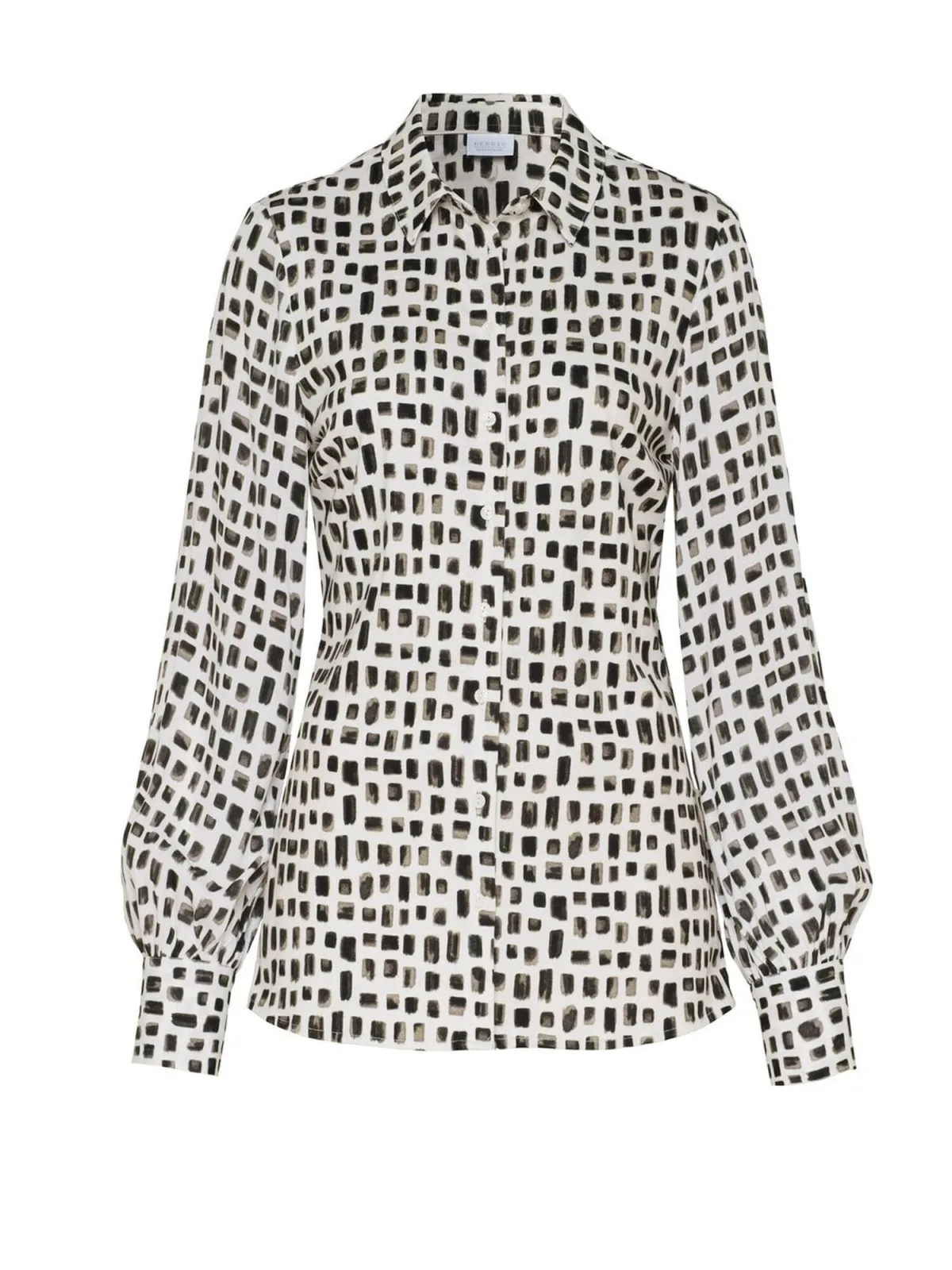 Blouse type: Klassieke blouse; Type sluiting: Knoopsluiting; Materiaal: Jersey, Katoen; Motief: Gestippeld; Kraag: Kentkraag; Pasvorm: Normale pasvorm; Armlengte: Lange mouw; Lengte: Normale lengte