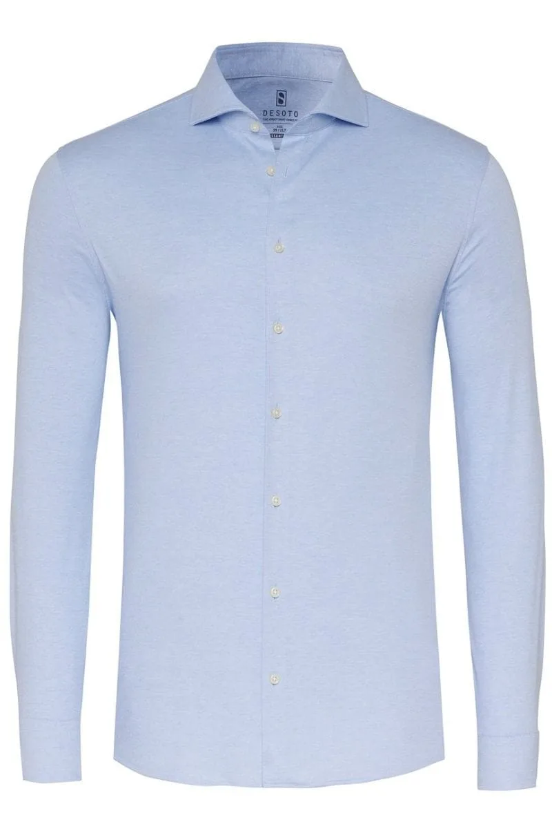 Op zoek naar hoge kwaliteit Heren Overhemden om je kledingkast mee aan te vullen? Met deze Overhemd van Desoto heb je altijd een goed Overhemd in huis. De Desoto Essential Overhemd Hai Piqué Lichtblauw is heel geschikt!Desoto Essential Overhemd Hai Piqué Lichtblauw in de kleur Lichtblauw en Blauw met een pasvorm Slim-fit is gemaakt van Super stretch, Strijkvrij katoen en Katoen met Enkel manchet met een Print dessin en Lange mouw