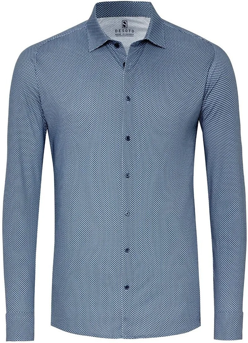 Op zoek naar hoge kwaliteit Heren Overhemden om je kledingkast mee aan te vullen? Met deze Overhemd van Desoto heb je altijd een goed Overhemd in huis. De Desoto Overhemd Kent Print Donkerblauw is heel geschikt!Desoto Overhemd Kent Print Donkerblauw in de kleur Blauw en Donkerblauw met een pasvorm Slim-fit is gemaakt van Super stretch en Strijkvrij katoen met Enkel manchet met een Print dessin en Lange mouw