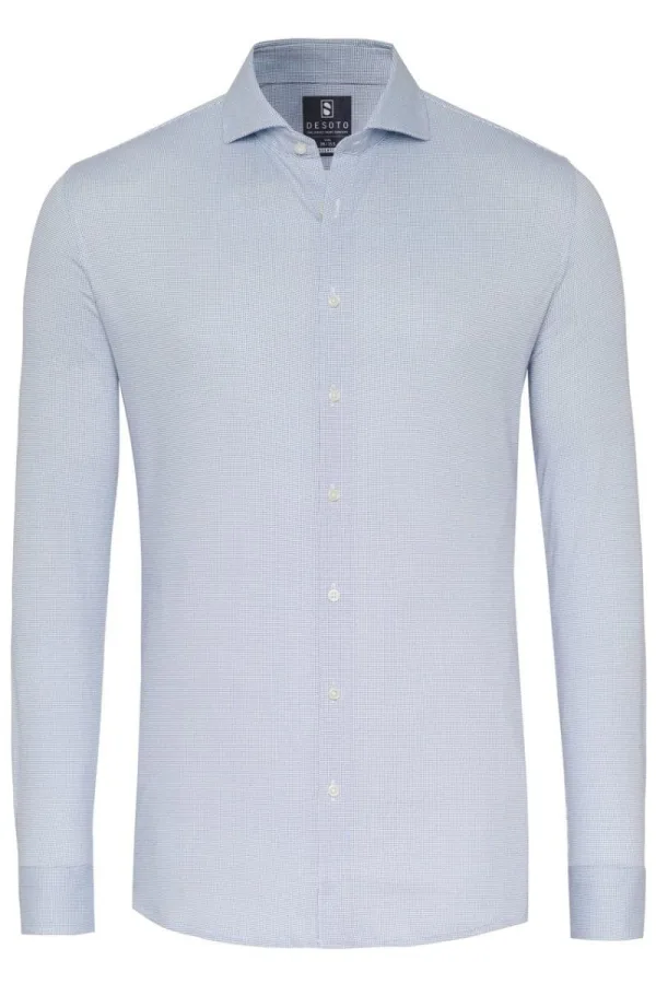 Op zoek naar hoge kwaliteit Heren Overhemden om je kledingkast mee aan te vullen? Met deze Overhemd van Desoto heb je altijd een goed Overhemd in huis. De Desoto Essential Overhemd Hai Piqué Dots Blauw is heel geschikt!Desoto Essential Overhemd Hai Piqué Dots Blauw in de kleur Lichtblauw en Blauw met een pasvorm Slim-fit is gemaakt van Super stretch, Strijkvrij katoen, Katoen en Stretch met Enkel manchet met een Stippen dessin en Lange mouw