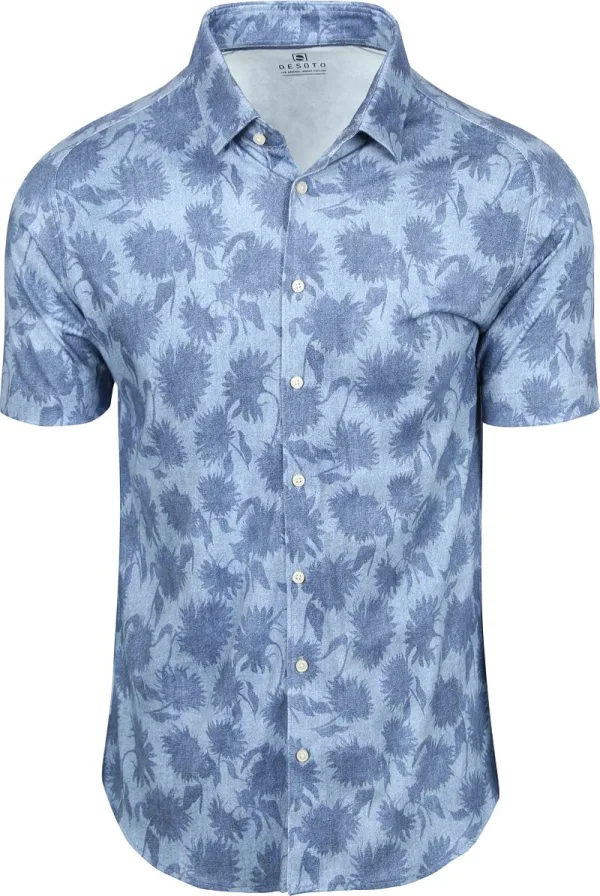 Op zoek naar hoge kwaliteit Heren Overhemden om je kledingkast mee op te vullen? Met deze Overhemd van Desoto heb je altijd een goed Overhemd in huis. De Desoto Short Sleeve Overhemd Print Bleached Denim is heel geschikt!Desoto Short Sleeve Overhemd Print Bleached Denim in de kleur Blauw met een pasvorm Slim-fit is gemaakt van Super stretch, Katoen en Strijkvrij katoen met een Print dessin en Korte mouw