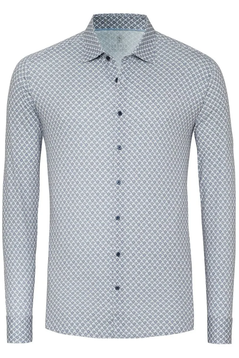 Op zoek naar hoge kwaliteit Heren Overhemden om je kledingkast mee aan te vullen? Met deze Overhemd van Desoto heb je altijd een goed Overhemd in huis. De Desoto Overhemd Print Bloem Blauw Beige is heel geschikt!Desoto Overhemd Print Bloem Blauw Beige in de kleur Blauw met een pasvorm Slim-fit is gemaakt van Super stretch, Strijkvrij katoen, Katoen en Stretch met Enkel manchet met een Print en Bloem dessin en Lange mouw
