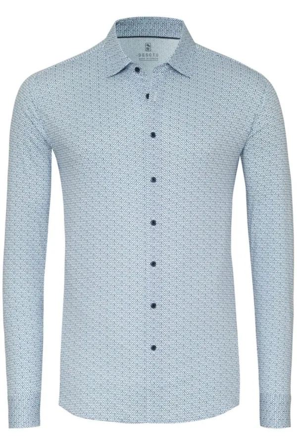 Op zoek naar hoge kwaliteit Heren Overhemden om je kledingkast mee aan te vullen? Met deze Overhemd van Desoto heb je altijd een goed Overhemd in huis. De Desoto Overhemd Print Lichtblauw is heel geschikt!Desoto Overhemd Print Lichtblauw in de kleur Lichtblauw en Blauw met een pasvorm Slim-fit is gemaakt van Super stretch, Strijkvrij katoen, Katoen en Stretch met Enkel manchet met een Print dessin en Lange mouw