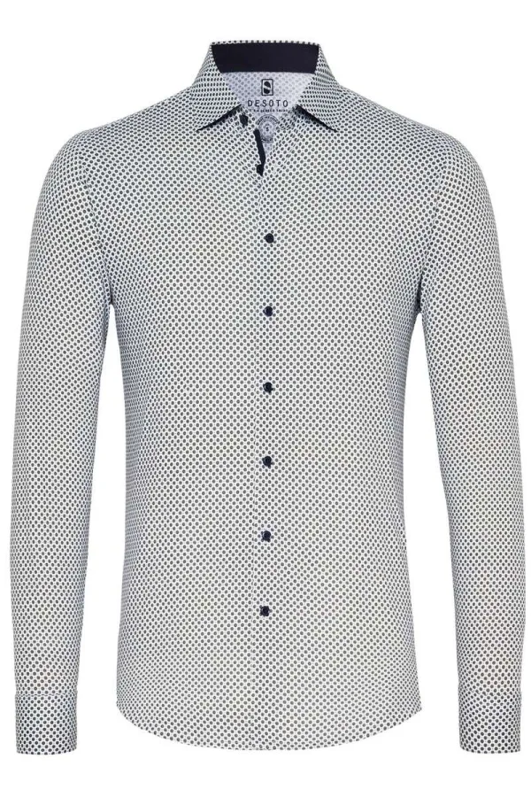 Desoto Slim Fit Jersey shirt wit/groen, Stippen Prijzen