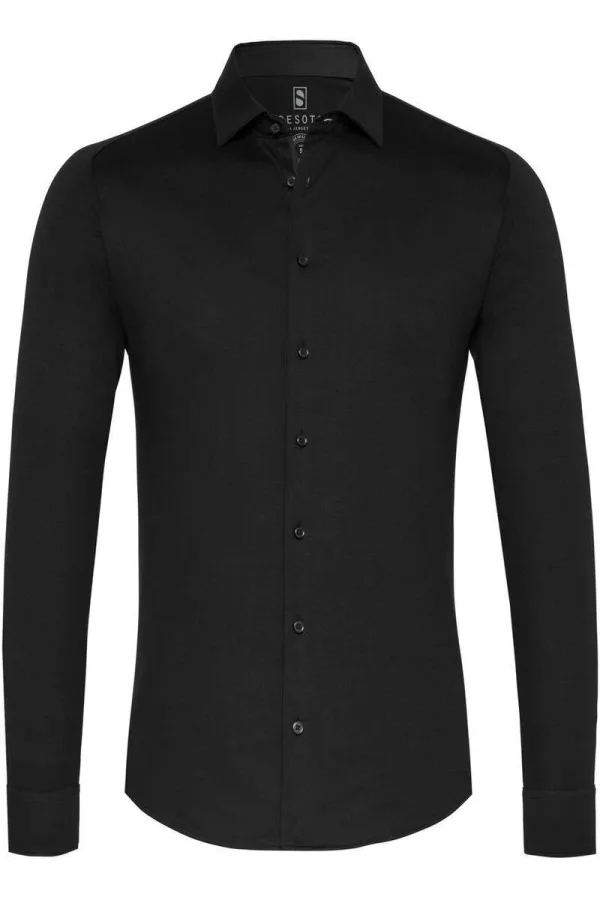Desoto Slim Fit Jersey shirt zwart, Effen