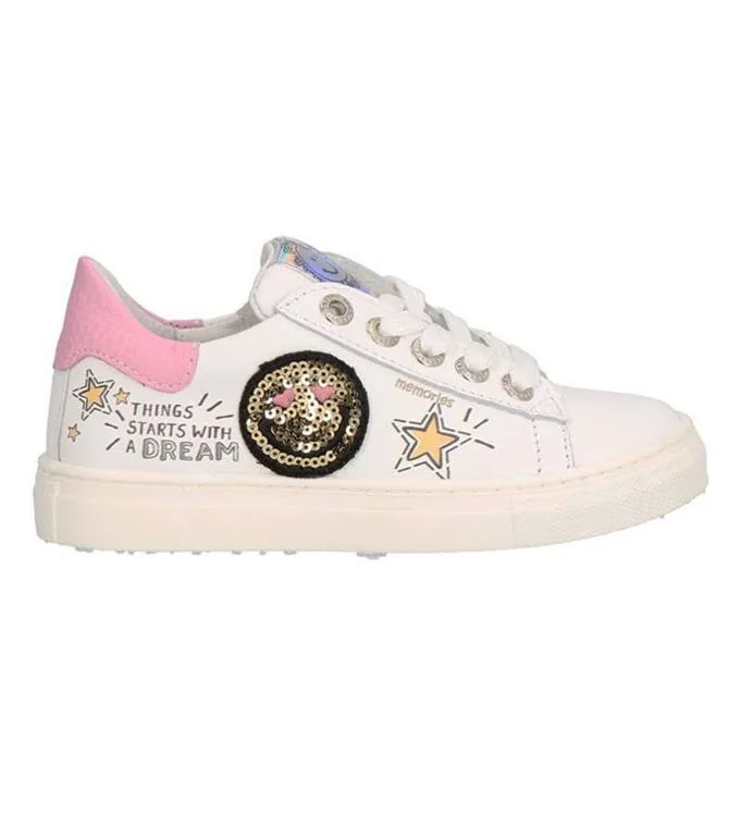 Hoe leuk zijn deze sneakers van Develab. Kijk die leuke glitter smiley op de zijkant van de schoenen, daar wordt je vrolijk van toch?Voorzien van veter en rits voor het makkelijk aan en uittrekken. Bekijk ook onze overige collectie van Develab op onze webshop!
