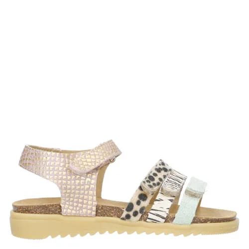 Develab leren sandalen roze/groen/bruin