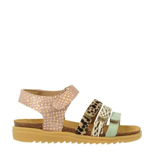 Develab leren sandalen roze/groen/bruin