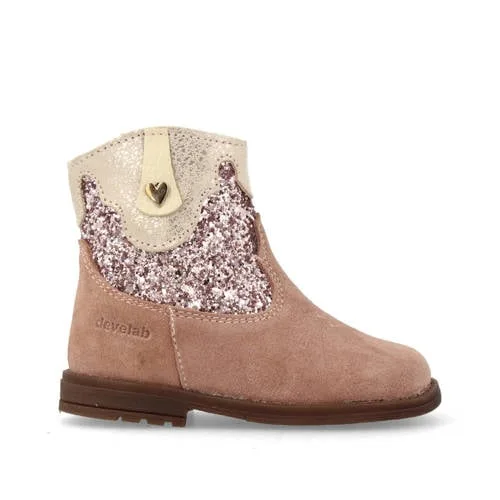 Deze laars van Develab is gemaakt van leer en heeft een ritssluiting. De voering is ook van leer. Met glitters valt deze laars lekker op en loopt je kind er fijn in.