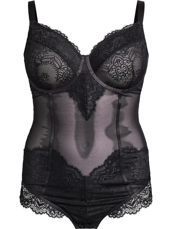 Design: Verstelbare lengte, Elastische inzetstukken, Haaksluiting; Type sluiting: Haakjes; Motief: Effen; Details: Kant; Extra's: Licht transparant, Op staal naden; Pasvorm: Aansluitende pasvorm; Armlengte: Mouwloos