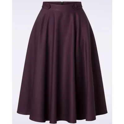”Swing your way into winter” met deze 50s Di Di Swing Skirt in Aubergine! Dit fifties pareltje draag je hoog in de taille, vanwaar zij uitloopt in een klassieke, elegante swing rok. De ‘faux’ knoopdetails in de zij vormen niet alleen een speels detail, maar benadrukken je taille ook nog eens extra. Uitgevoerd in een stevige maar soepel vallende, auberginepaarse stof (stretcht amper) die prachtig met je mee beweegt. De winterperiode kan zo mooi zijn, zeker met een rok als Di Di in je kast! 😉 * Full swing rok * ‘Faux’ knoopdetails * Zijwaartse steekzakken * Rits- en haaksluiting achterzijde * Combineer met een van onze petticoats voor een extra feestelijk effect * Valt bij een lengte van 1,70 m over de knie