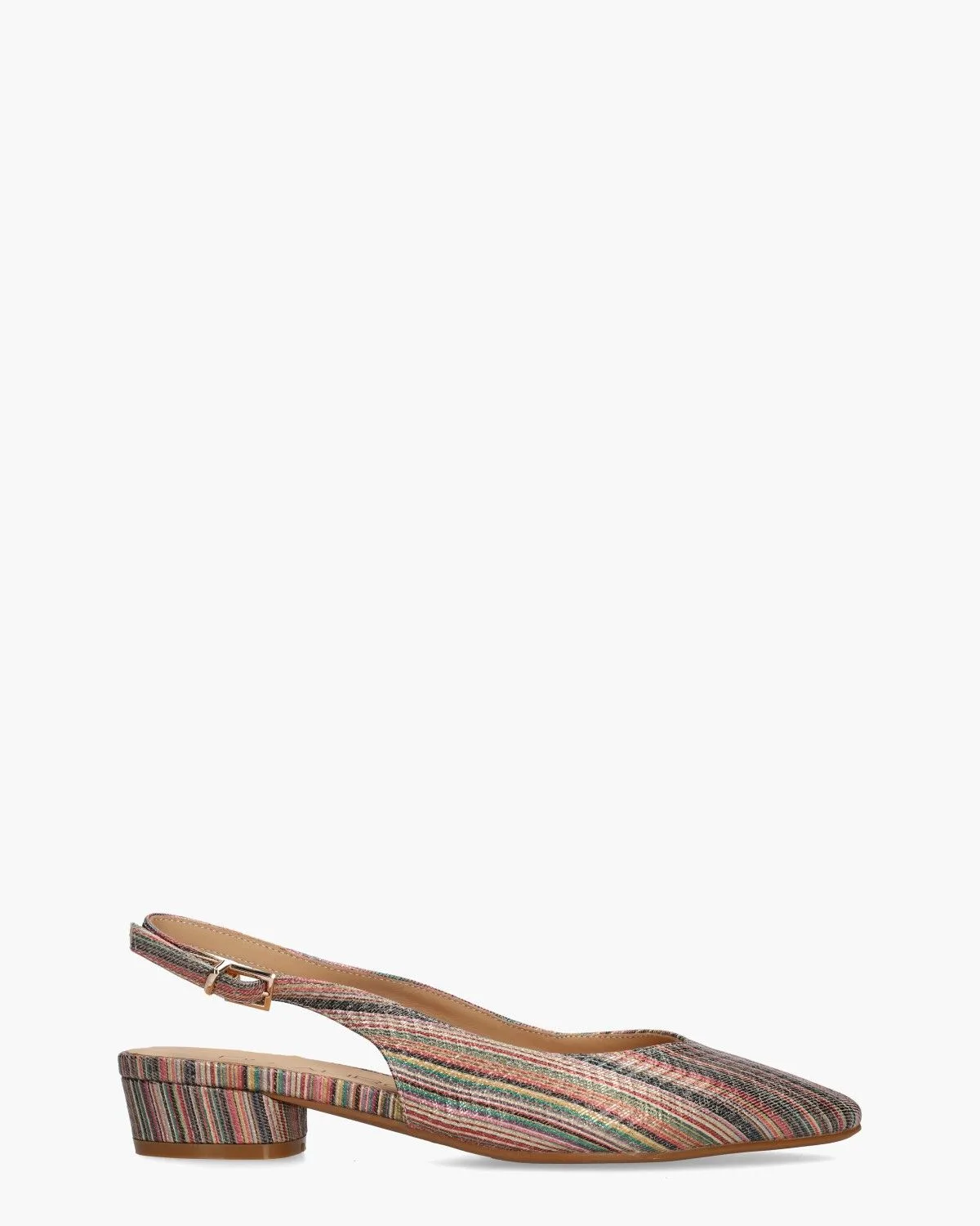 Een uitgesproken print met een zachte glans maakt de Di Lauro Danila slingbackpump voor dames tot een echte blikvanger. Het multicolor leren bovenwerk krijgt extra diepte door de subtiele metallic finish. Binnenin zorgt de leren voering voor comfort en een luxe gevoel bij iedere stap. Het fijne hielbandje met roségouden gespje laat
