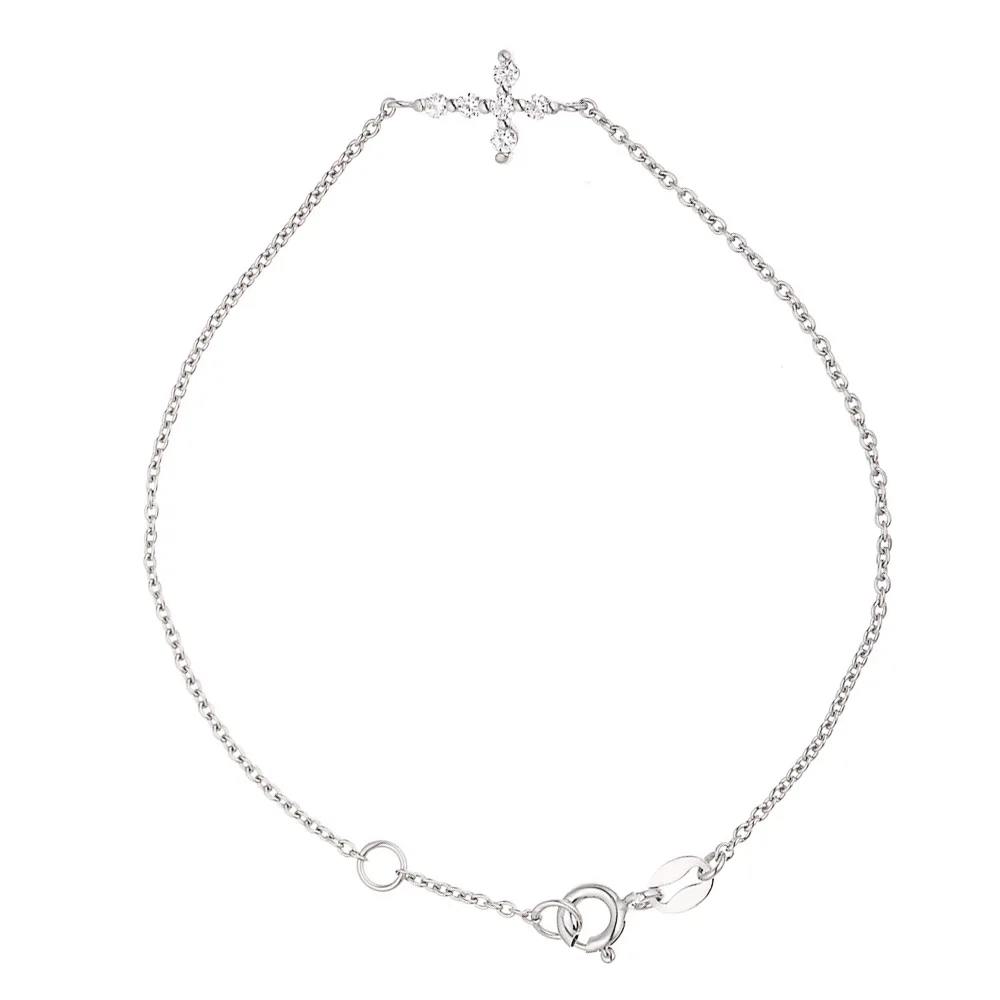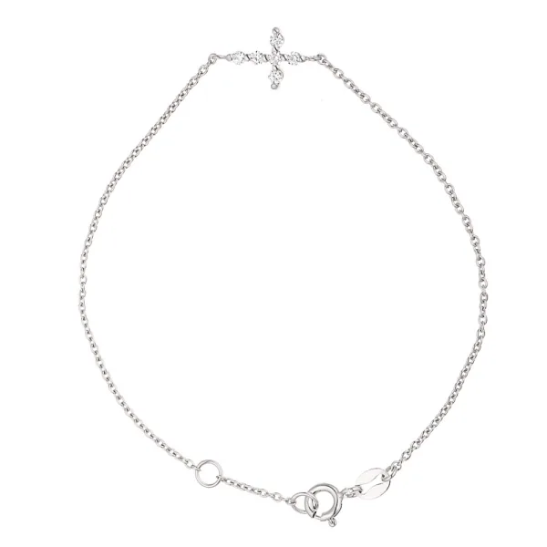 925 Sterling Zilveren Kettingarmband met Centraal Patroon Kruis - 1 cm - Bezet met Witte Zirkoniumoxide - 7 inch, 18 cm lengte verstelbaar met tussenring op 6,6 inch, 17 cm - Onze sieraden worden in Frankrijk gemaakt en worden geleverd in een geschenkdoos, vergezeld van een Certificaat van Authenticiteit en Internationale Garantie.