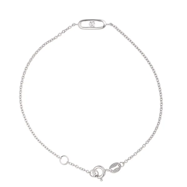925 Sterling Zilveren Kettingarmband met Centraal Ontwerp Versierd met een 3mm Witte Zirkonia Solitaire Ring - Lengte 18 cm, 7 inch verstelbaar met tussenring op 17 cm, 6,6 inch -Onze sieraden worden in Frankrijk vervaardigd en worden geleverd in een geschenkdoos vergezeld van een Certificaat van Authenticiteit en Internationale Garantie.