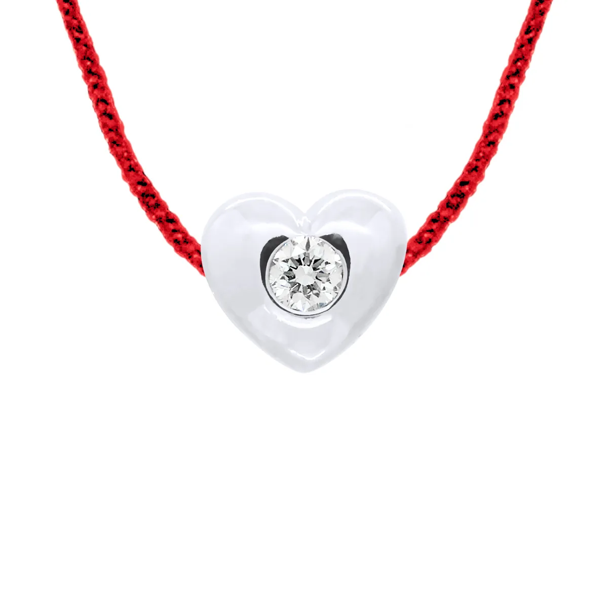 Diamond Necklace COEUR 0.050 CTS Nylon Red 925