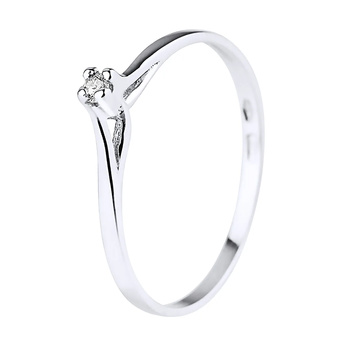 Solitaire Ring Diamanten 0,030 Cts (1 x 0030 CTS) - Quality HSi (Color H - Quality Si1) - Grootte Glossy - Serti 4 Claws - Verkrijgbaar vanaf maat 48 tot Size 60 - White Gold 750 duizendste (18K) - Garantie 2 jaar tegen defecten in vakmanschap - wordt geleverd in een zaak met een certificaat van echtheid en een Internationale Garantie - Al onze juwelen zijn gemaakt in Frankrijk.