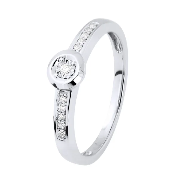Diamond Solitaire 0060 0.50 Cts Cts illusie ondersteund - Diamant Central Cts 0,010 (1 x 0,010 CTS) - Ring Huis (10 x 0005 CTS) - Quality HSI (kleur H - Quality Si1) - Set met Illusion 0.50 Cts - Diameter reden Central 5mm - Sieraden White Gold 375000 - Beschikbaar vanaf maat 48 tot maat 60 - 2 jaar garantie tegen defecten in de productie - wordt geleverd in een geval van het Juweel met een certificaat van echtheid en een Internationale garantie - Al onze sieraden zijn gemaakt in Frankrijk.
