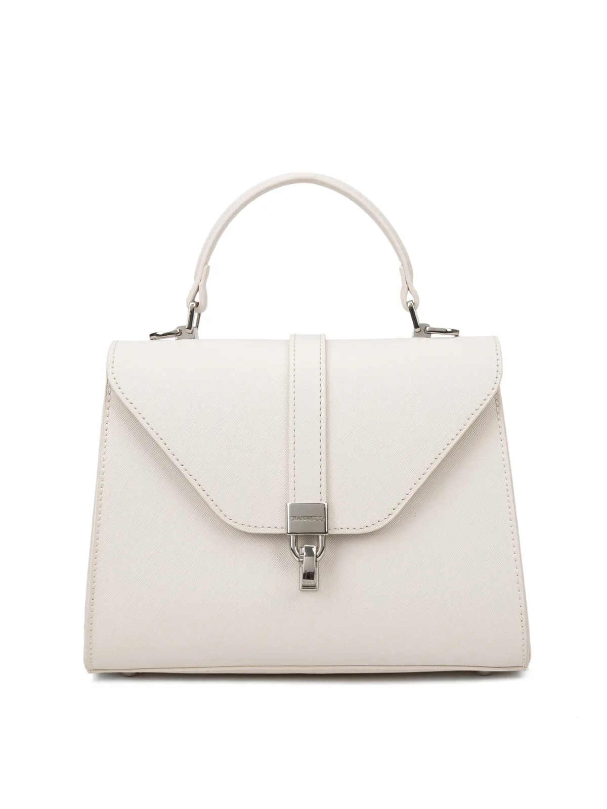 Dameshandtas met kliksluiting. één met ritssluiting en één open binnenzak. afwezige externe zakken. verstelbare en afneembare schouderband. In PU-handvat. een binnencompartiment. extern materiaal. Ongevoerd interieur. Afmetingen: 24x19x10,5 cm. Modeproduct