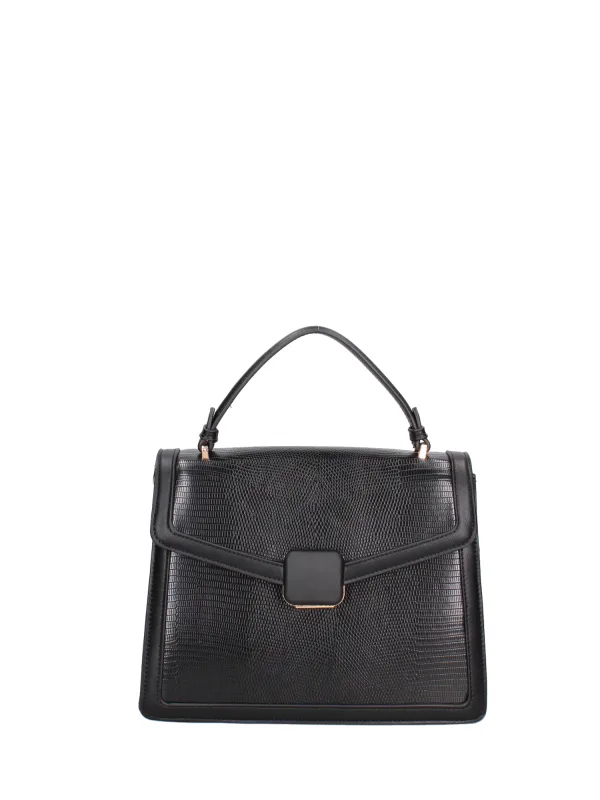 Dameshandtas met kliksluiting. twee binnenzakken met ritssluiting en één open binnenzak. één achterkant met externe zakken met ritssluiting. verstelbare en afneembare schouderband van eco-leer. in eco-leer handvat. twee binnenvakken. extern materiaal. gevoerd met polyester binnenkant. Afmetingen: 25x20,5x14 cm. Modeproduct