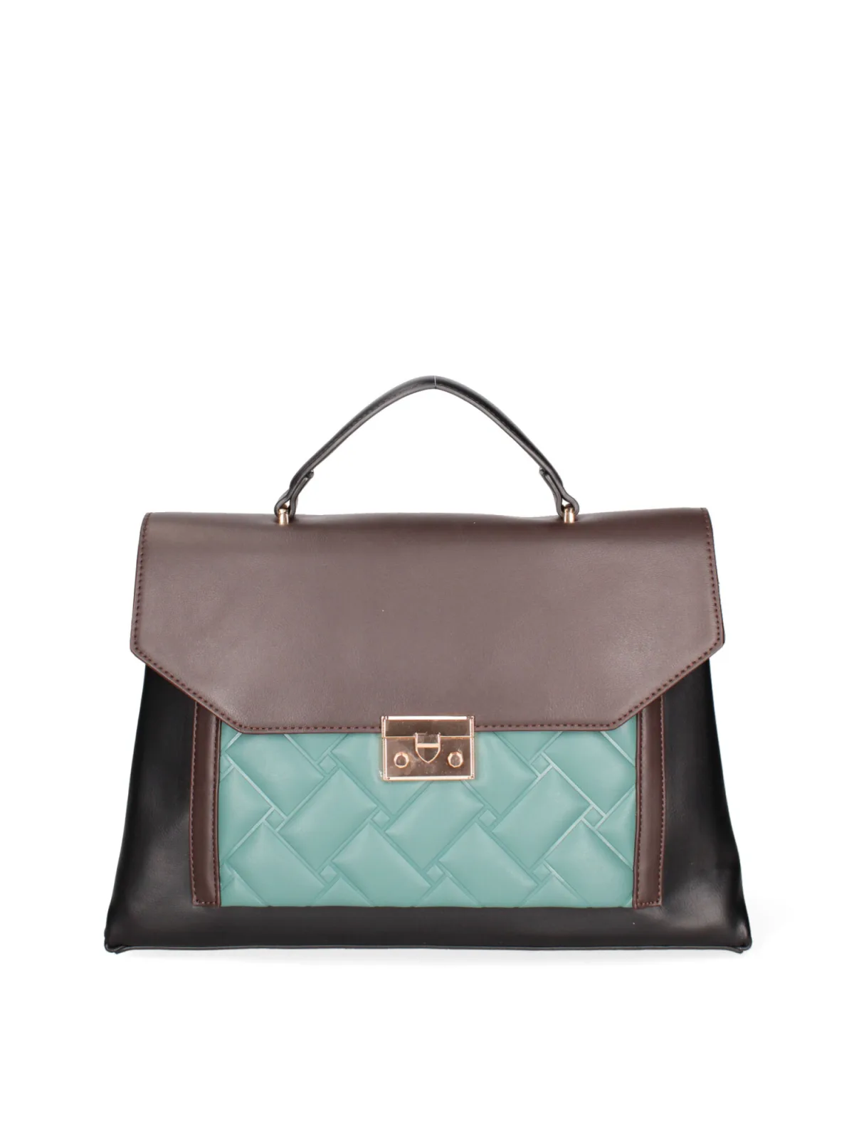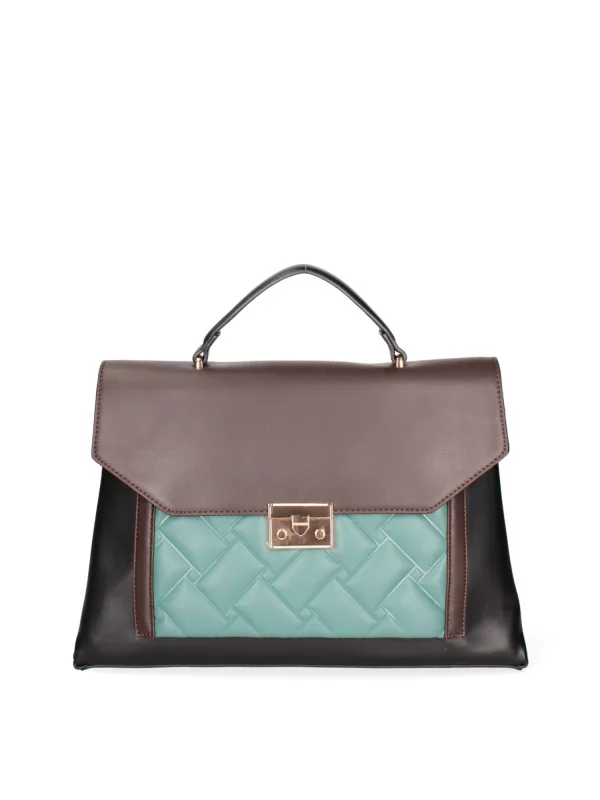 Dameshandtas met kliksluiting. één met ritssluiting en twee open binnenzakken. één achterkant met externe zakken met ritssluiting. afneembare schouderband van eco-leer. in eco-leer handvat. twee binnenvakken. extern materiaal. gevoerd met polyester binnenkant. Afmetingen: 34,5x22,5x14 cm. Modeproduct