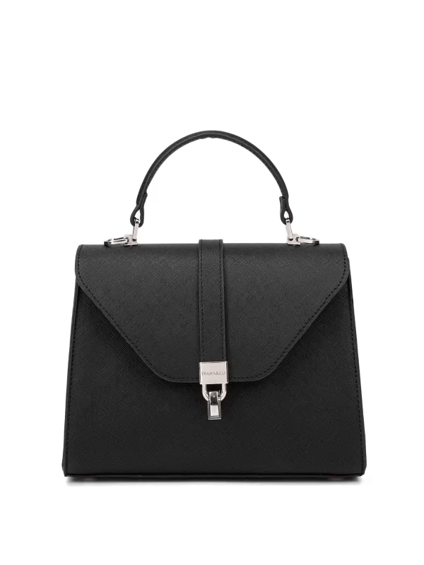 Dameshandtas met kliksluiting. één met ritssluiting en één open binnenzak. afwezige externe zakken. verstelbare en afneembare schouderband. In PU-handvat. een binnencompartiment. extern materiaal. Ongevoerd interieur. Afmetingen: 24x19x10,5 cm. Modeproduct
