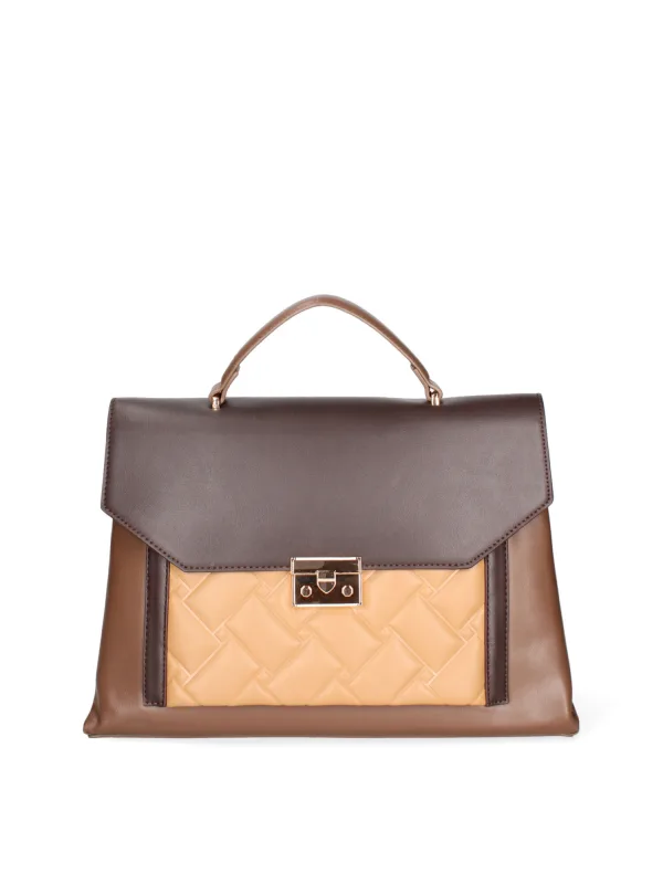 Dameshandtas met kliksluiting. één met ritssluiting en twee open binnenzakken. één achterkant met externe zakken met ritssluiting. afneembare schouderband van eco-leer. in eco-leer handvat. twee binnenvakken. extern materiaal. gevoerd met polyester binnenkant. Afmetingen: 34,5x22,5x14 cm. Modeproduct