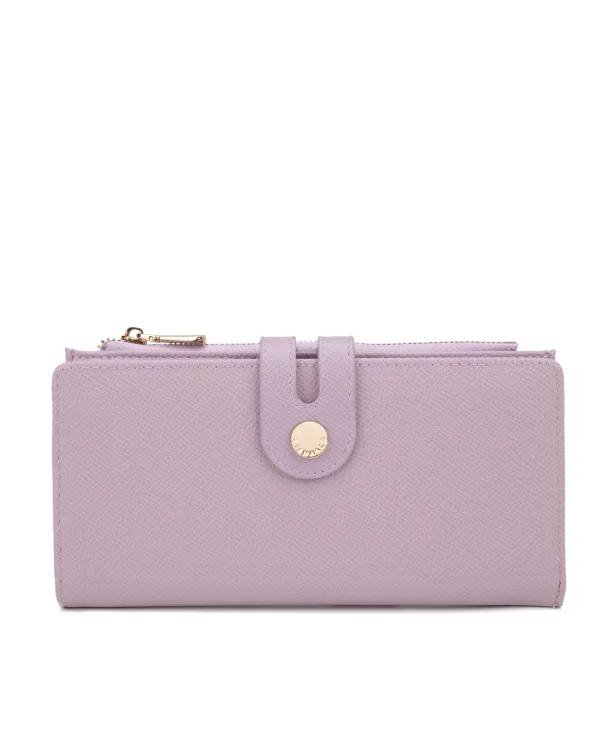 Damesportemonnee met magnetische knoopsluiting. binnenzakken voor kaarthouder en bankbiljettenhouder. afwezige externe zakken. ontbrekende schouderband. ontbrekend handvat. een binnencompartiment. extern materiaal. Ongevoerd interieur. Afmetingen: 9,5x19x3 cm. Modeproduct