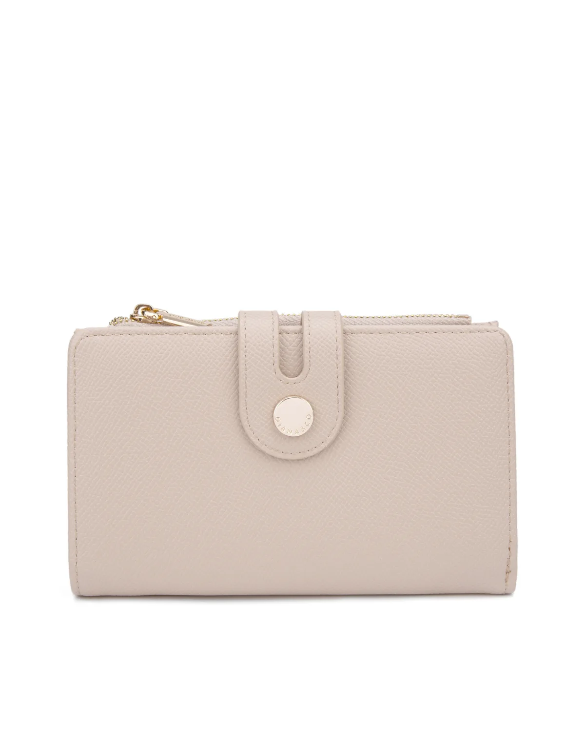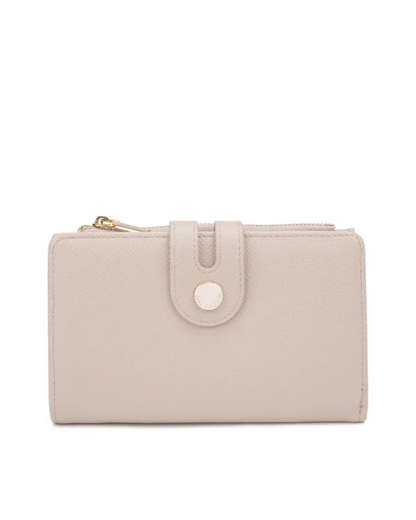 Damesportemonnee met magnetische knoopsluiting. binnenzakken voor kaarthouder en bankbiljettenhouder. afwezige externe zakken. ontbrekende schouderband. ontbrekend handvat. een binnencompartiment. extern materiaal. Ongevoerd interieur. Afmetingen: 9,5x15,5x3 cm. Modeproduct