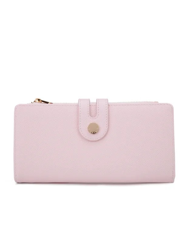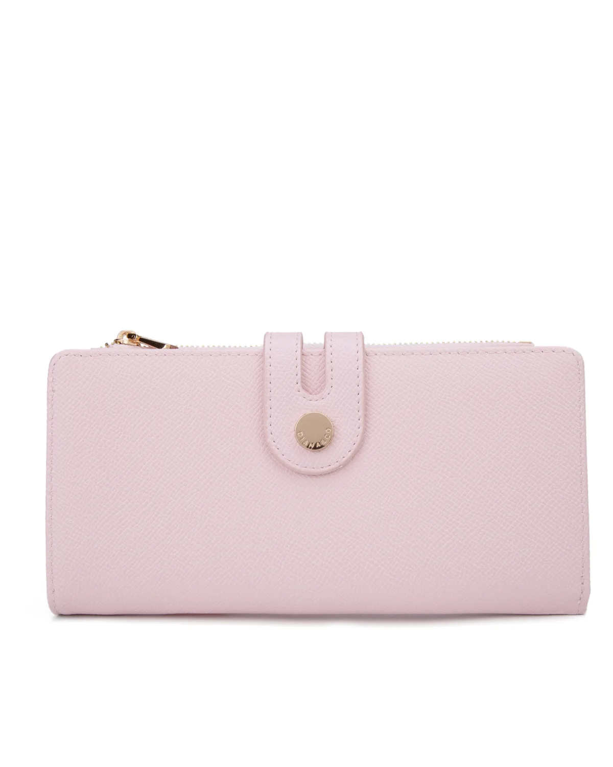 Damesportemonnee met magnetische knoopsluiting. binnenzakken voor kaarthouder en bankbiljettenhouder. afwezige externe zakken. ontbrekende schouderband. ontbrekend handvat. een binnencompartiment. extern materiaal. Ongevoerd interieur. Afmetingen: 9,5x19x3 cm. Modeproduct