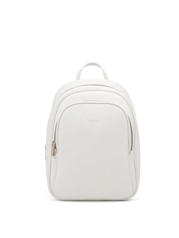 Damesrugzak met ritssluiting. één met ritssluiting en twee open binnenzakken. één voorkant met ritssluiting en één achterkant met externe zakken met rits. ontbrekende schouderband. In PU-handvat. een binnencompartiment. extern materiaal. Ongevoerd interieur. Afmetingen: 23x34,5x11 cm. Modeproduct