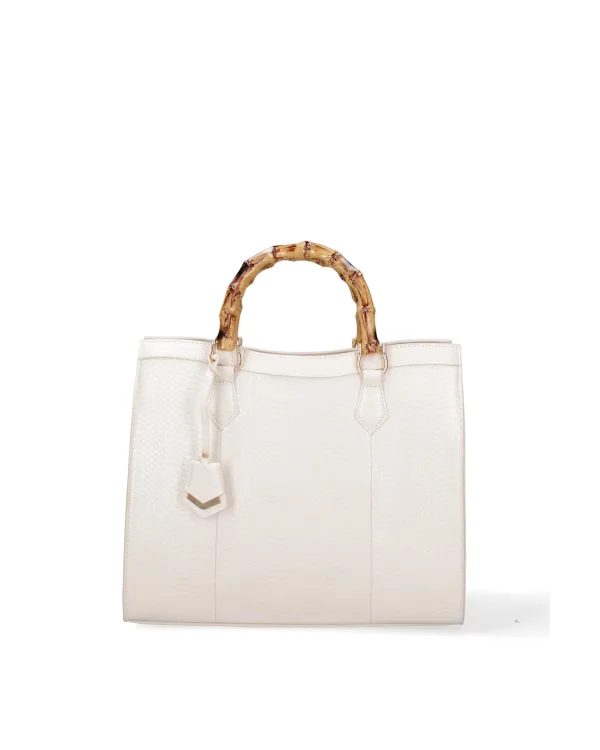 Damesschoudertas met ritssluiting. één met ritssluiting en twee open binnenzakken. afwezige externe zakken. verstelbare en afneembare schouderband. gemaakt van bamboe handvat. één binnenvak. Schoudertas Dames extern materiaal. gevoerd met polyester binnenkant. Afmetingen: 34x28x14,5 cm. Modeproduct