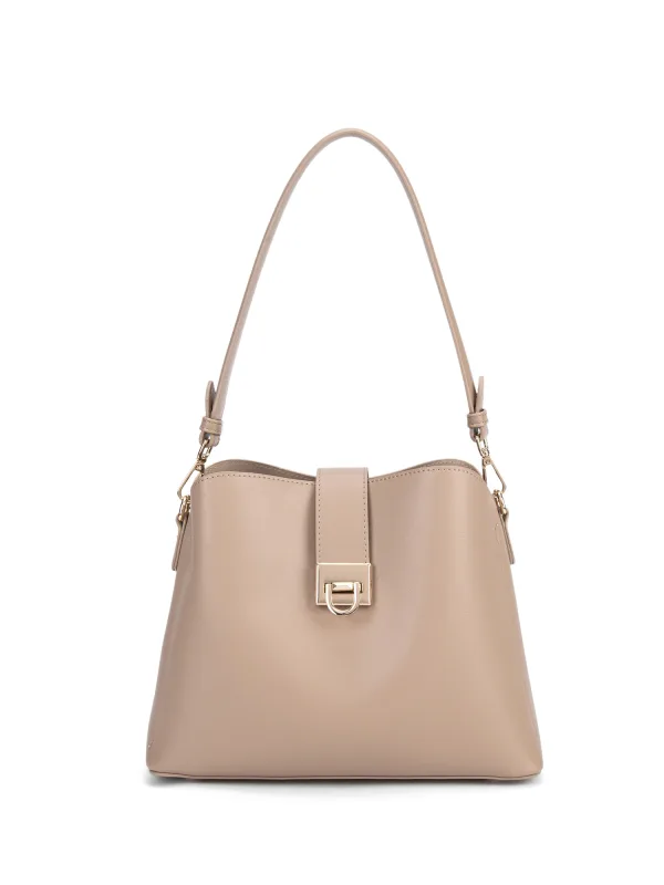 Dames schoudertas met rollatorsluiting. één met ritssluiting en één open binnenzak. afwezige externe zakken. verstelbare en afneembare schouderband. In PU-handvat. Drie binnenvakken. extern materiaal. Ongevoerd interieur. Afmetingen: 29x22x10,5 cm. Modeproduct