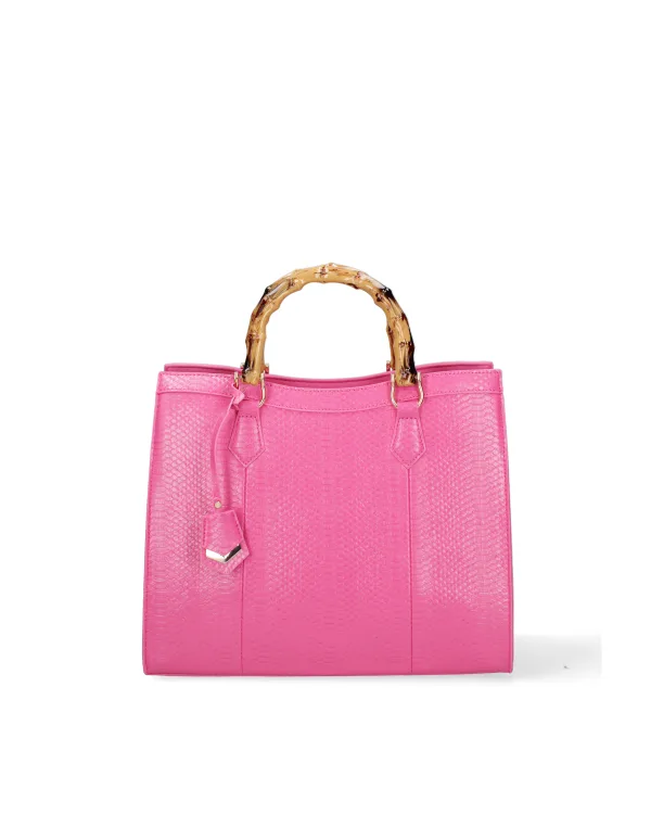 Damesschoudertas met ritssluiting. één met ritssluiting en twee open binnenzakken. afwezige externe zakken. verstelbare en afneembare schouderband. gemaakt van bamboe handvat. één binnenvak. Schoudertas Dames extern materiaal. gevoerd met polyester binnenkant. Afmetingen: 34x28x14,5 cm. Modeproduct