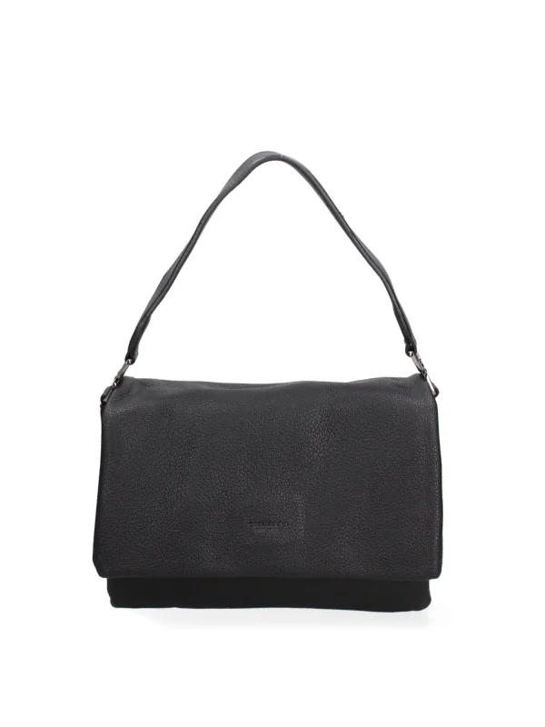 Damesschoudertas met magnetische knoopsluiting. één met ritssluiting en twee open binnenzakken. één achterkant met externe zakken met ritssluiting. verstelbare en afneembare schouderband van eco-leer. in eco-leer handvat. een binnencompartiment. extern materiaal. gevoerd met polyester binnenkant. Afmetingen: 28x20x9 cm. Modeproduct