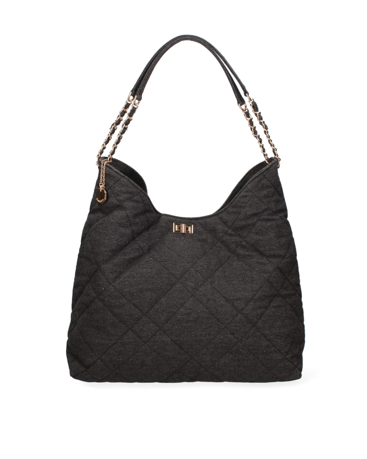 Damesschoudertas met draaisluiting. één met ritssluiting en één open binnenzak. afwezige externe zakken. ontbrekende schouderband. in ketting en stoffen handvat. twee binnenvakken. Schoudertas Dames extern materiaal. gevoerd met polyester binnenkant. Afmetingen: 41x36x13 cm. Modeproduct