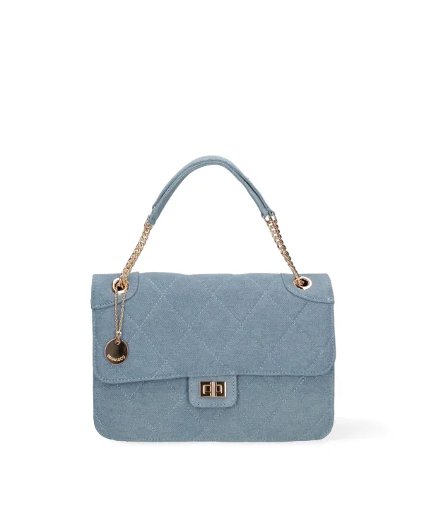 Damesschoudertas met draaisluiting. één met ritssluiting en één open binnenzak. afwezige externe zakken. ontbrekende schouderband. in ketting en stoffen handvat. één binnenvak. Schoudertas Dames extern materiaal. gevoerd met polyester binnenkant. Afmetingen: 27,5x18x9,5 cm. Modeproduct